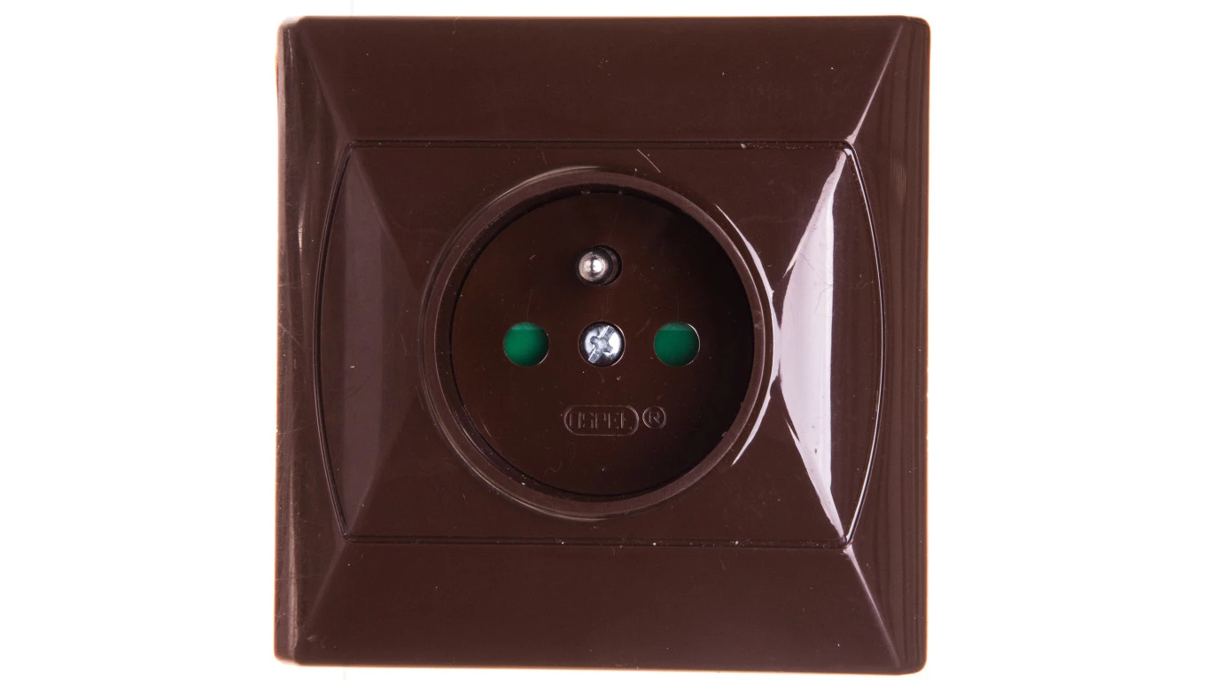 AKCENT Gniazdo pojedyncze z/u z przesłonami brązowe GP-1AZP/24
