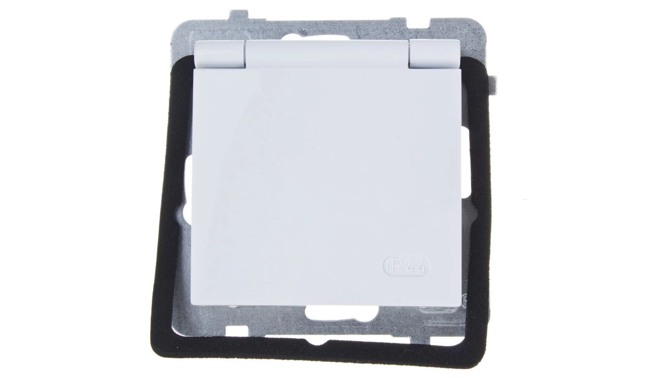AS Gniazdo bryzgoszczelne z/u IP44 klapka biała GPH-1GZ/m/00/w