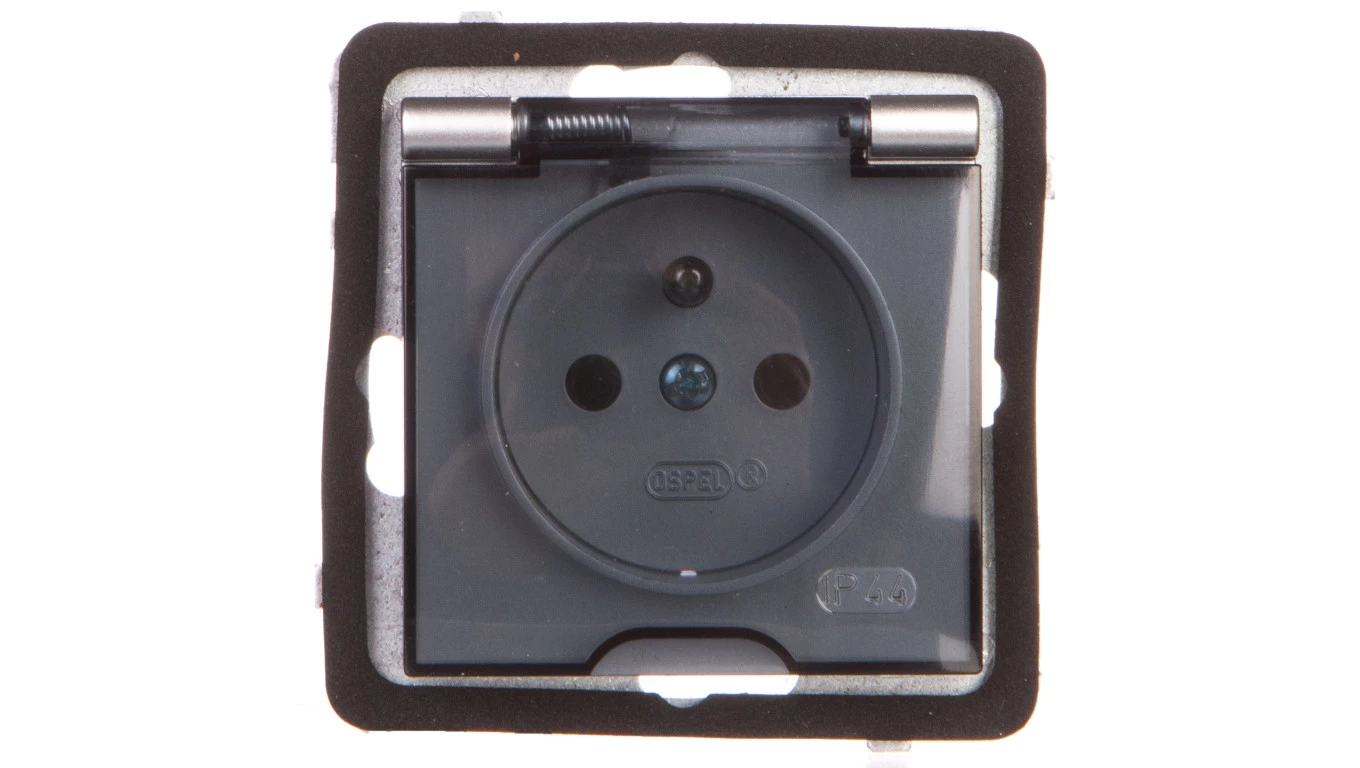 AS Gniazdo bryzgoszczelne z/u IP44 klapka przezroczysta srebro GPH-1GZ/m/18/d