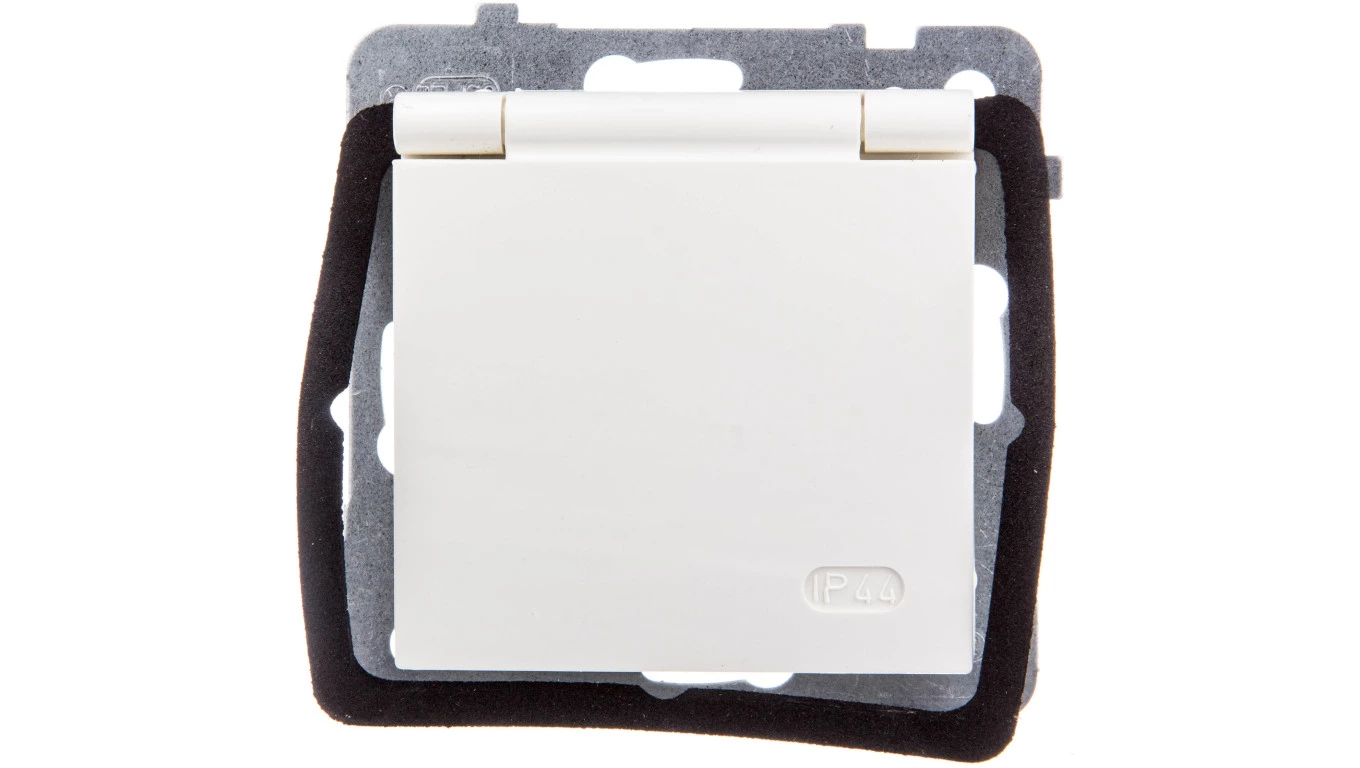 AS Gniazdo bryzgoszczelne z/u IP44 z przesłonami klapka ecru GPH-1GZP/m/27/w
