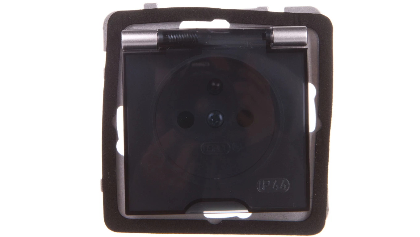 AS Gniazdo bryzgoszczelne z/u IP44 z przesłonami klapka przezroczysta srebro GPH-1GZP/m/18/d