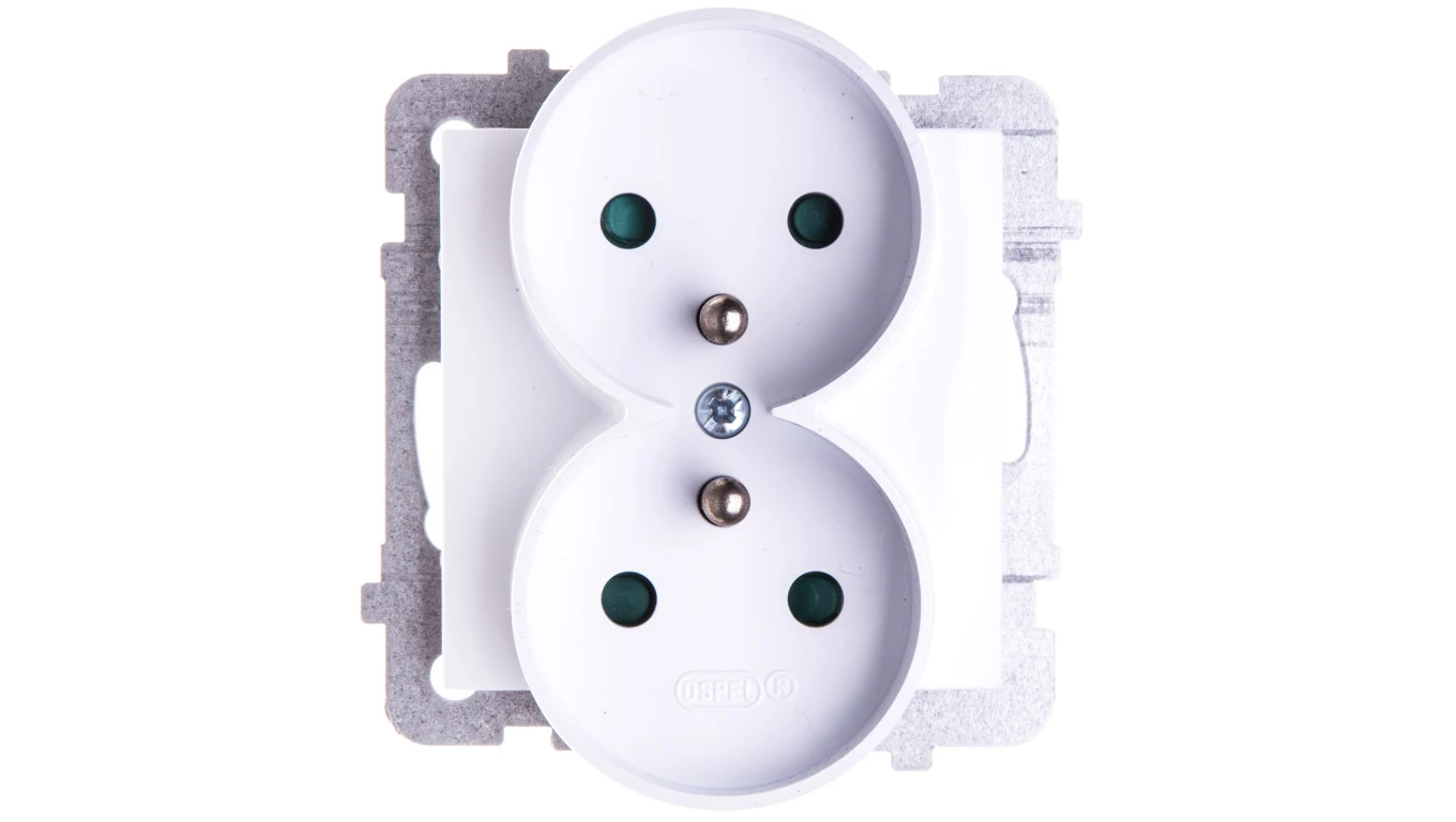 AS Gniazdo podwójne z/u z przesłonami białe GP-2GRZP/m/00
