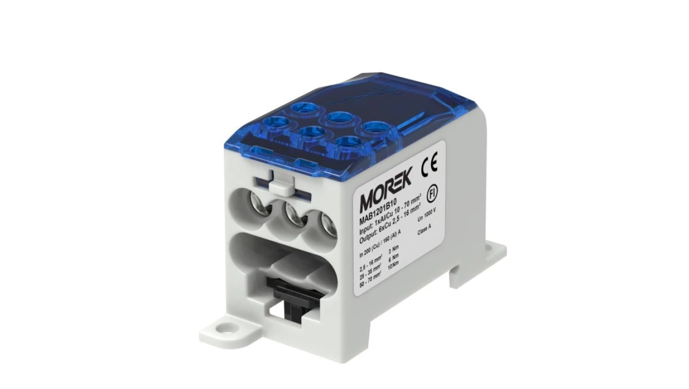 Blok dystrybucyjny - rozdzielczy OJL200A niebieski wej: 1xAl/Cu 10-70mm2 wyj: 6xCu 2,5- 16mm2 MAB1201B10