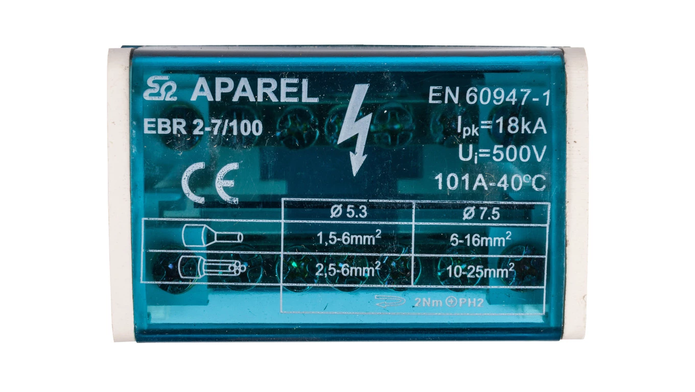 Blok listew rozdzielczych 2-biegunowy 100A EBR 2-7/100 R33RA-02020100101