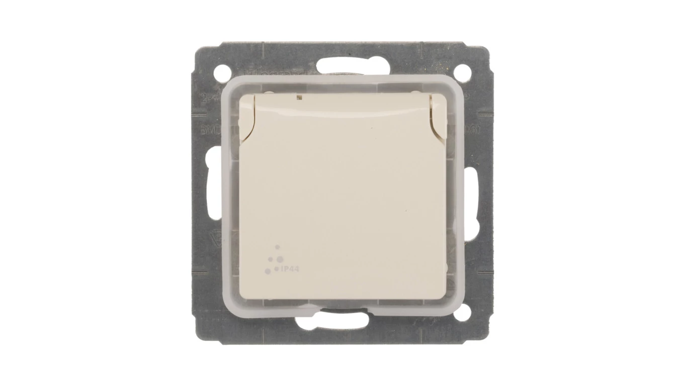 CARIVA Gniazdo pojedyncze z/u 16A IP44 z przesłonami kremowe 773728