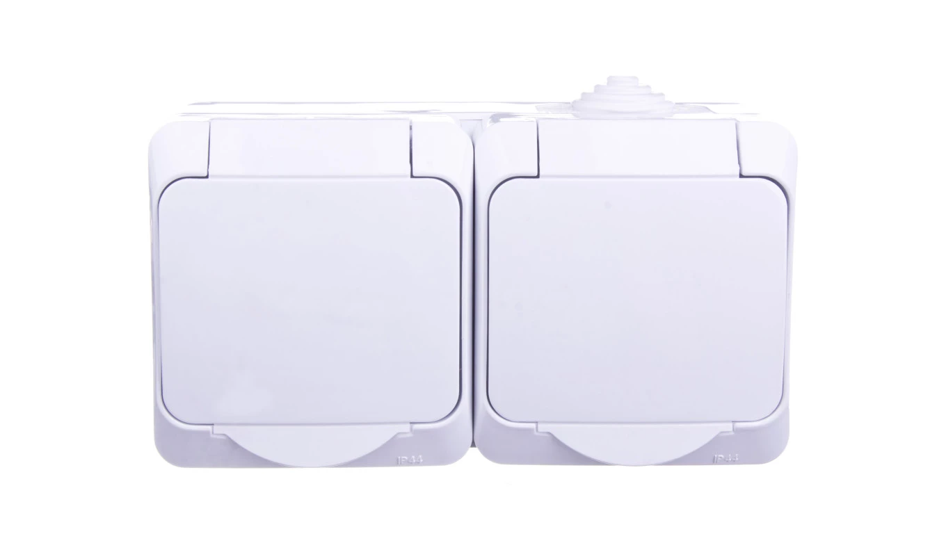 Cedar Plus Gniazdo hermetyczne podwójne z/u z klapką i przesłonami 16A IP44 białe WDE000522