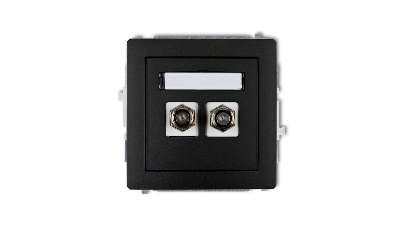 DECO Gniazdo antenowe podwójnego typu F (SAT) niklowany czarny mat 12DGF-2
