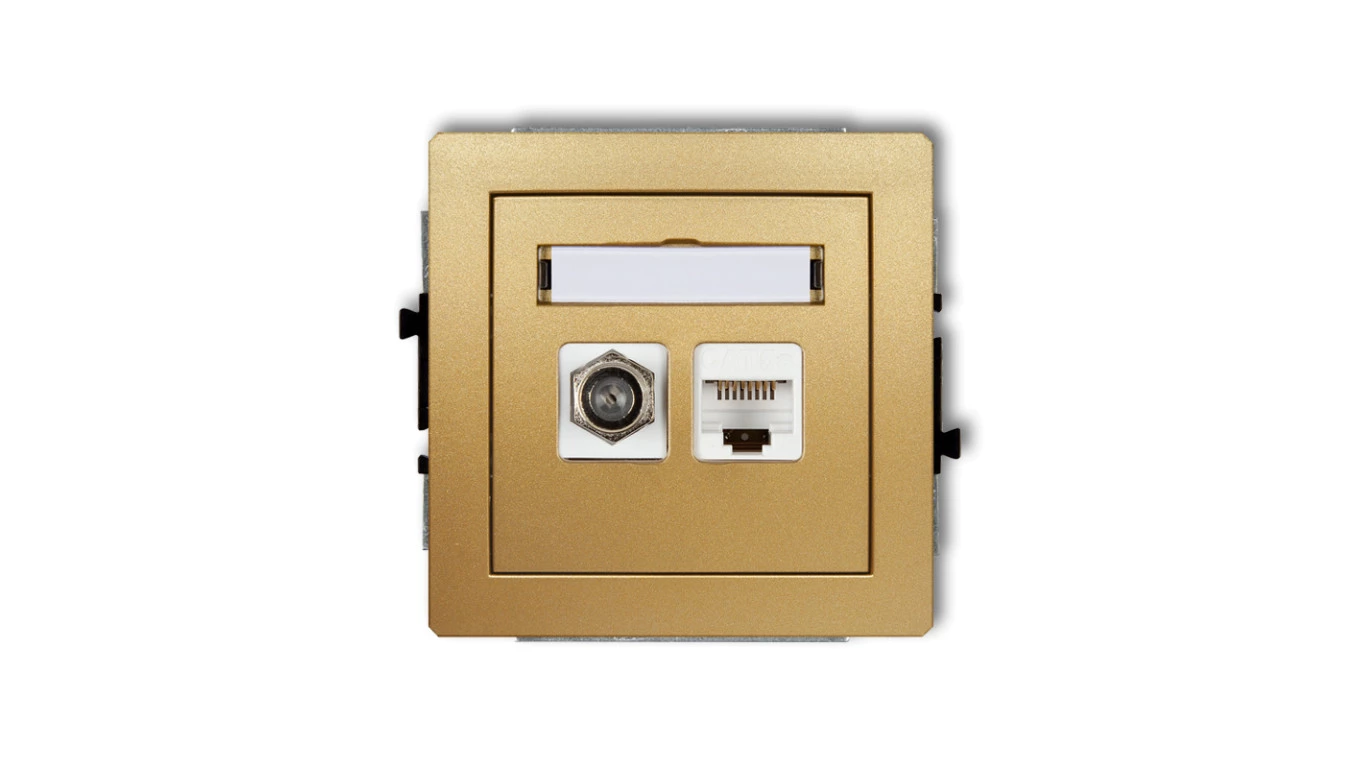 DECO Gniazdo antenowe poj. typu F (SAT) + gniazda komp. poj. 1xRJ45 kat. 5e 8-stykowy złoty 29DGFK-1