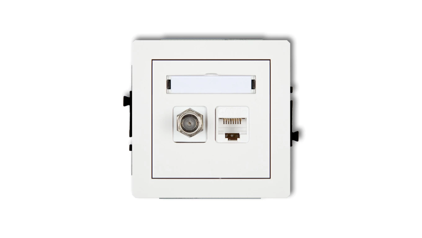 DECO Gniazdo antenowe pojedyncze typu F (SAT) + gniazda komputerowe pojedyncze 1xRJ45 kat. 5e 8-stykowy biały DGFK-1