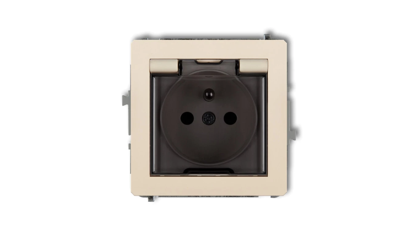 DECO Gniazdo bryzgoszczelne z/u (klapka dymna) beżowy 1DGPB-1zdp