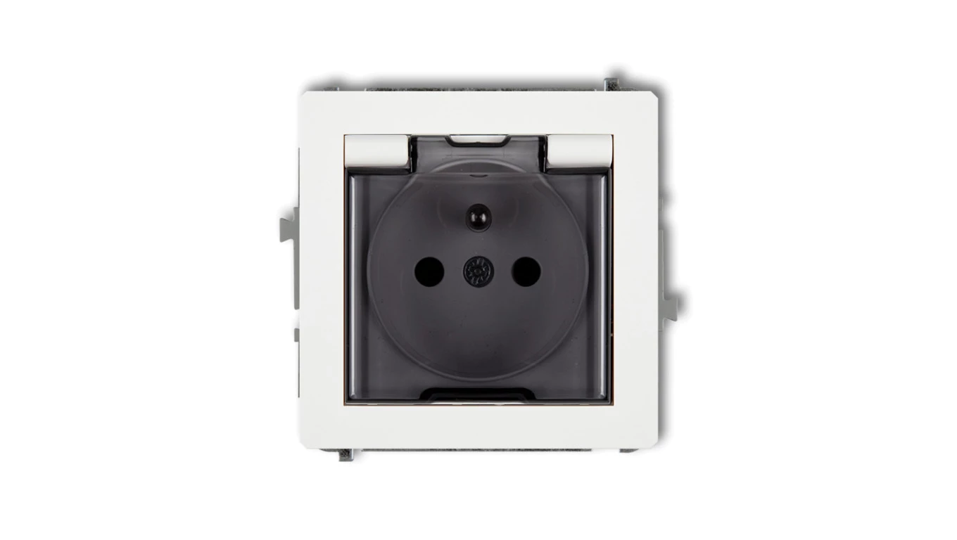 DECO Gniazdo bryzgoszczelne z/u (klapka dymna) biały DGPB-1zdp
