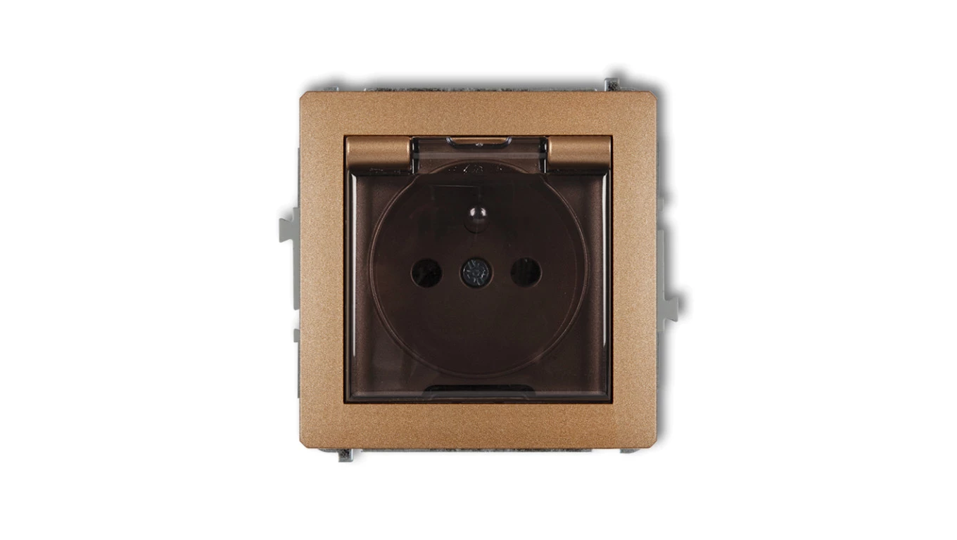 DECO Gniazdo bryzgoszczelne z/u (klapka dymna) złoty metalik 8DGPB-1zdp