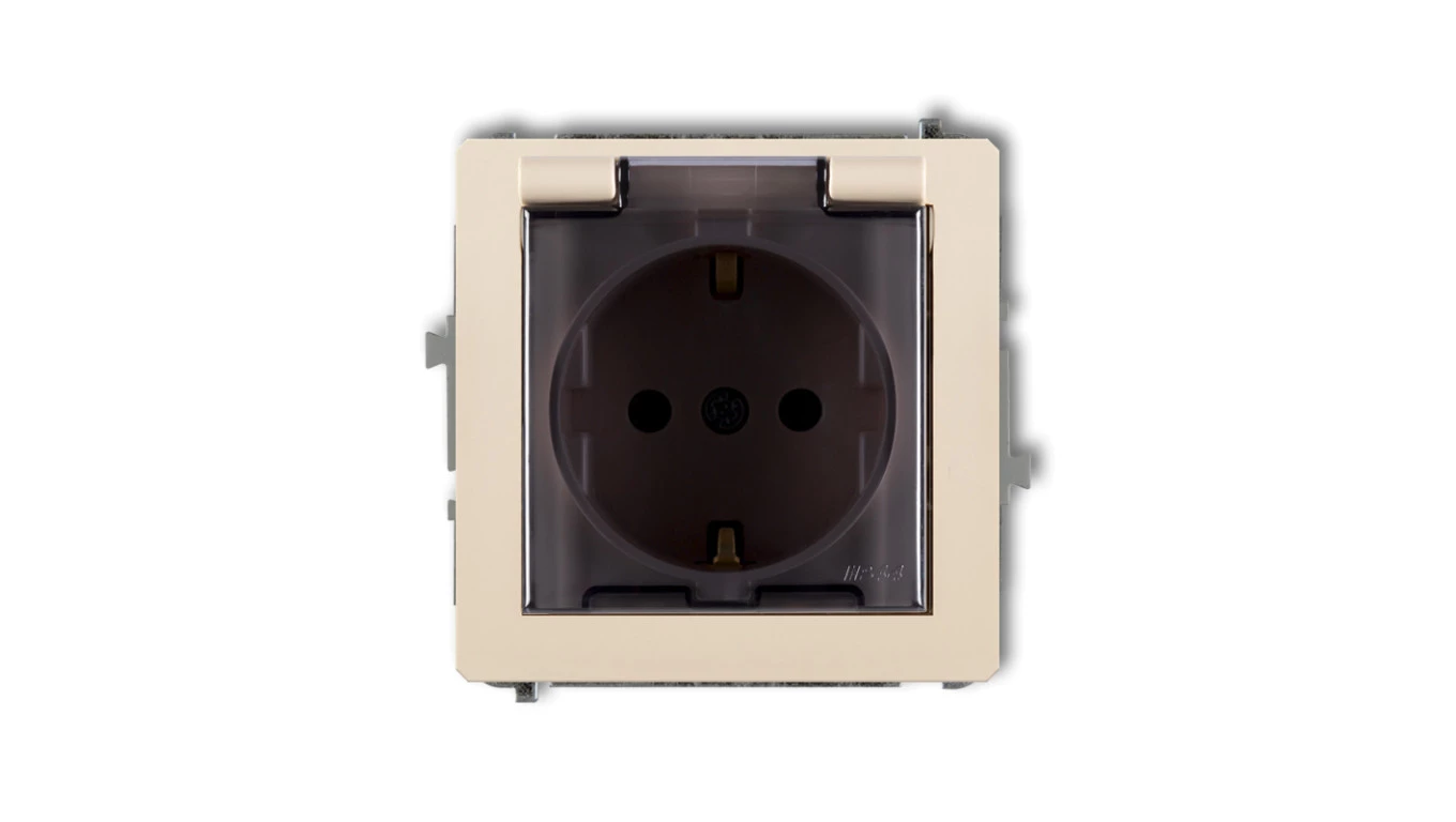 DECO Gniazdo bryzgoszczelne z/u SCHUKO (klapka dymna) beżowy 1DGPB-1sdp