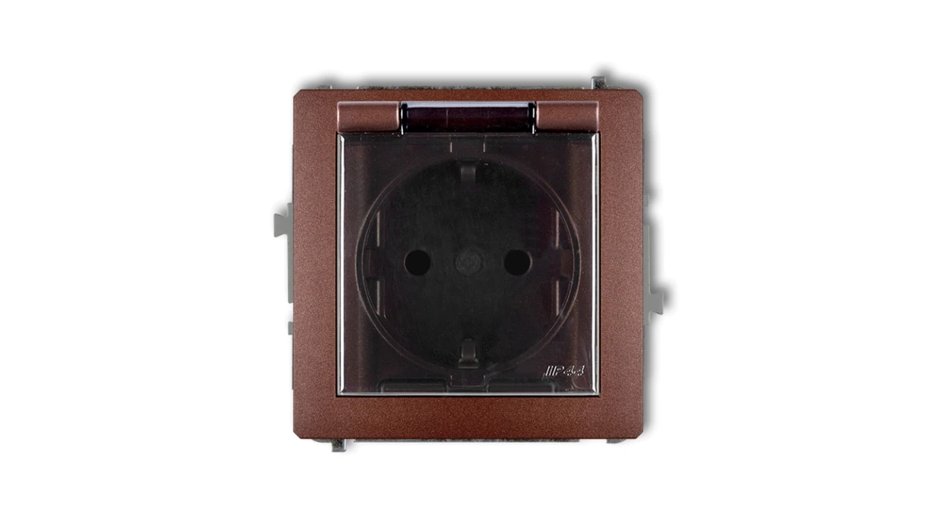 DECO Gniazdo bryzgoszczelne z/u SCHUKO (klapka dymna) brązowy metalik 9DGPB-1sdp