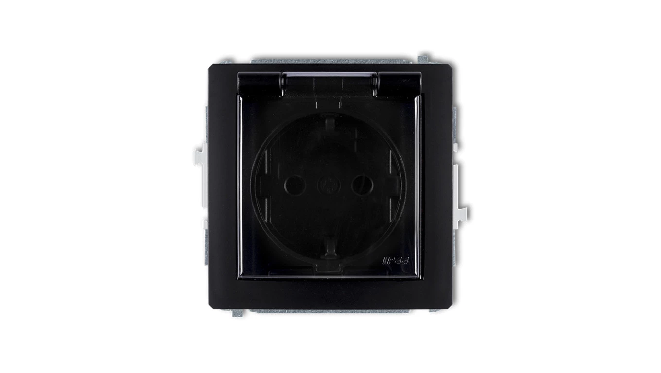 DECO Gniazdo bryzgoszczelne z/u SCHUKO (klapka dymna) czarny mat 12DGPB-1sdp