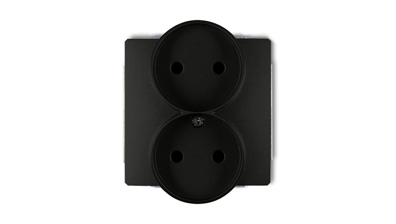 DECO Gniazdo podwójne b/u czarny mat 12DGPR-2p