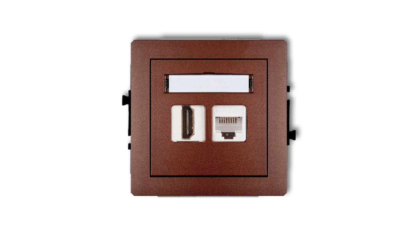 DECO Gniazdo pojedyncze HDMI + Gniazdo komputerowe pojedyncze 1xRJ45, kat. 5e, 8-stykowy brązowy metalik 9DGHK