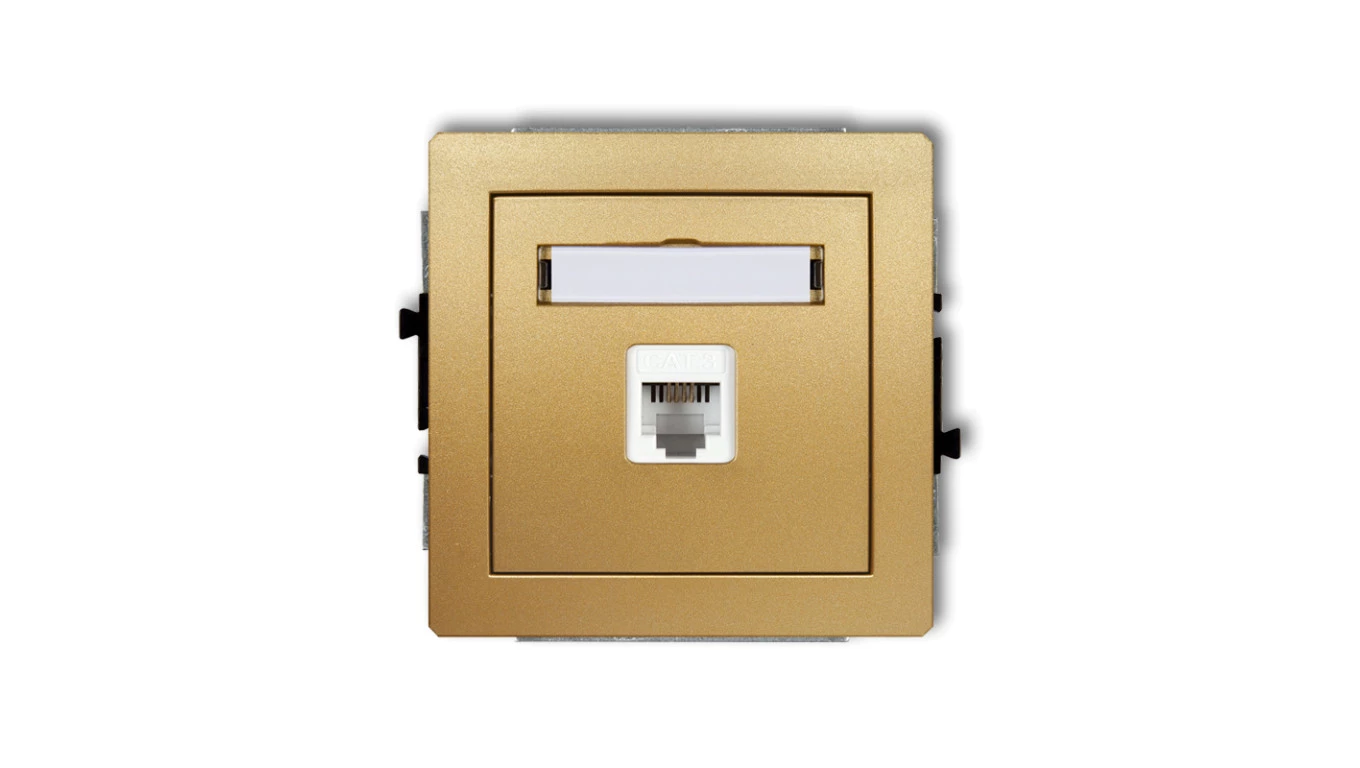 DECO Gniazdo telefoniczne pojedyncze 1xRJ11, 4-stykowy, beznarzędziowe złoty 29DGT-1