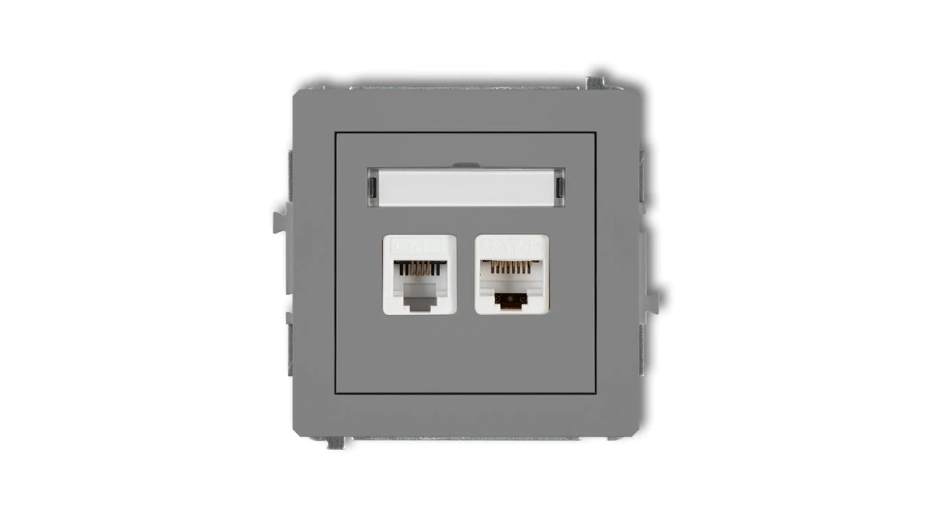 DECO Gniazdo telefoniczne pojedyncze 1xRJ11 + komputerowego pojedyncze 1xRJ45, kat. 5e, 8-stykowy, beznarzędziowe szary mat 27DG