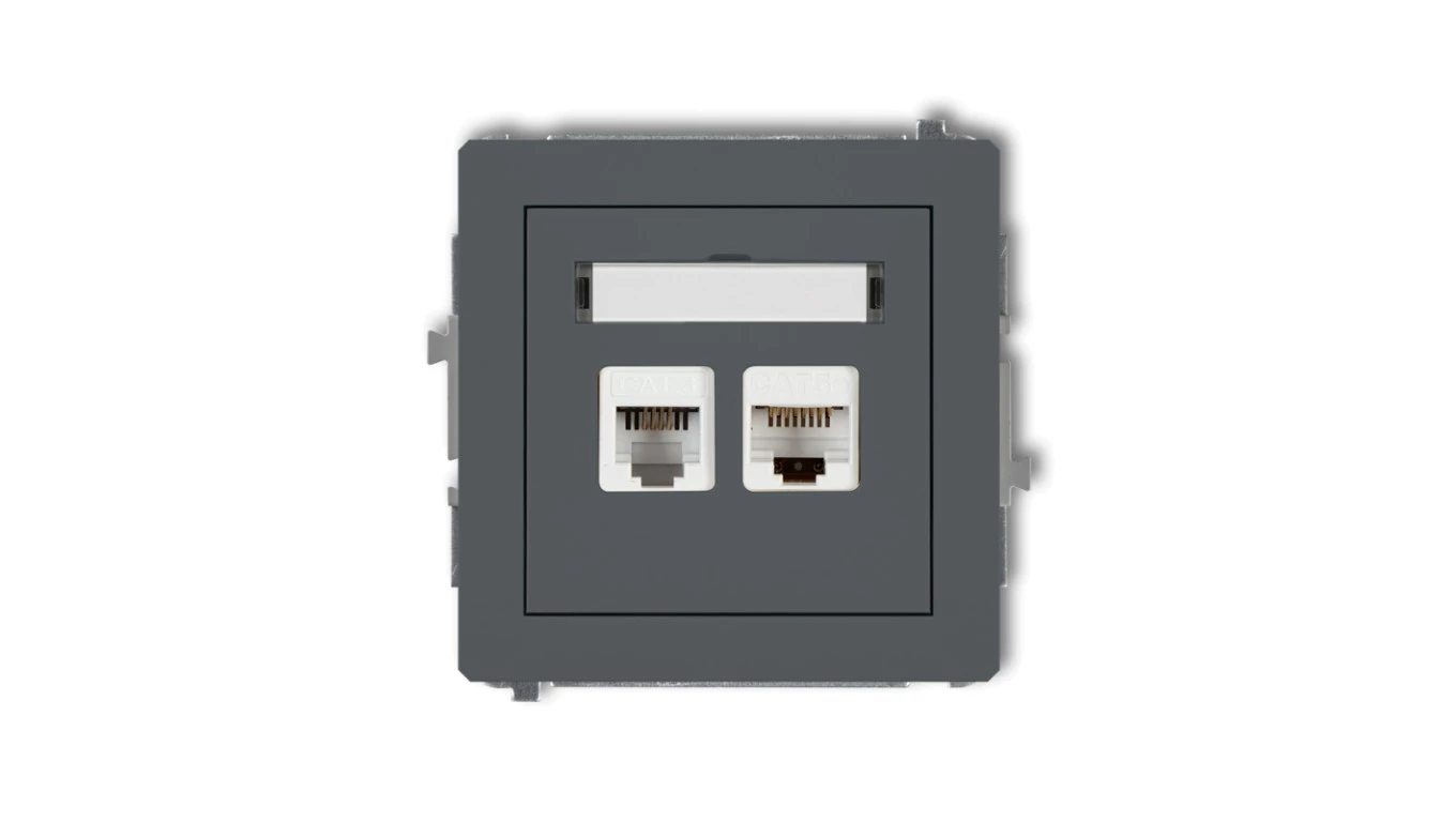 DECO Gniazdo telefoniczne pojedyncze 1xRJ11 + komputerowego pojedyncze 1xRJ45, kat. 5e, 8-stykowy, beznarzędziowe grafitowy mat