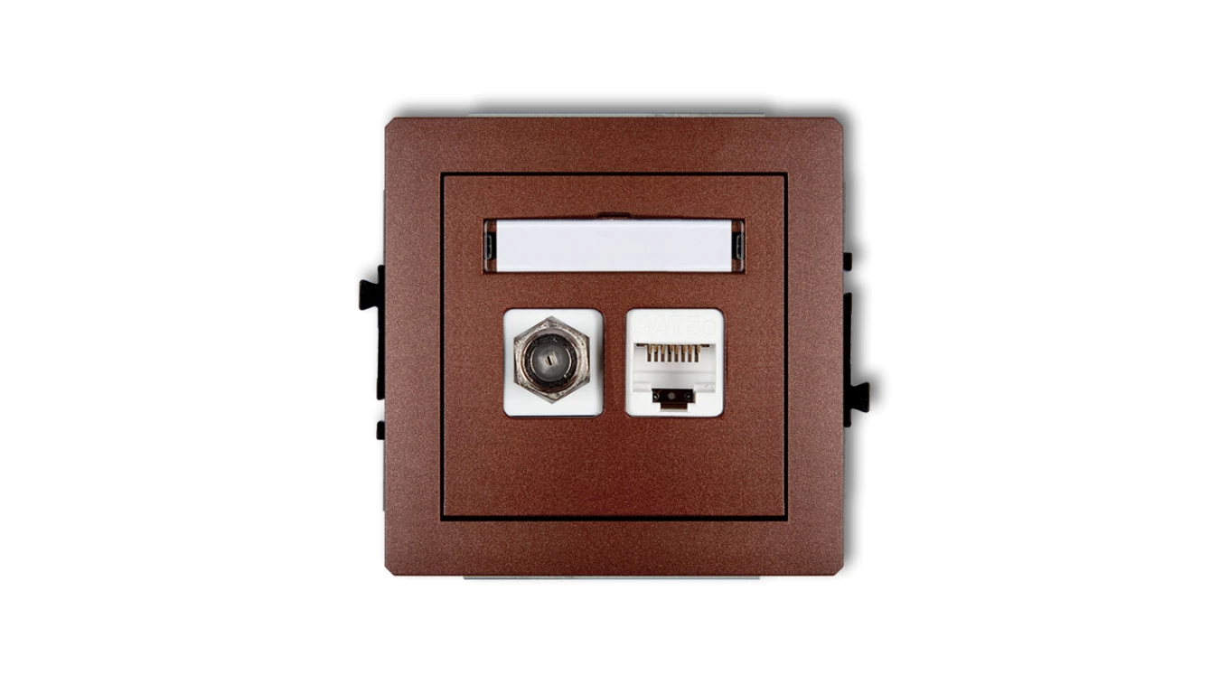 DECO Mechanizm gniazda antenowego poj. typu F (SAT) + gniazda komp. poj. 1xRJ45, kat. 6, 8-stykowy brązowy metalik 9DGFK-3