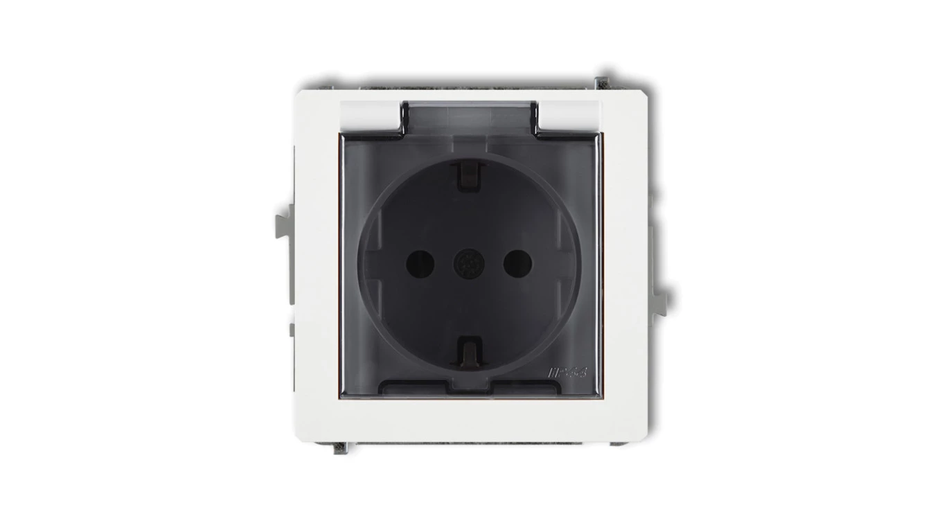 DECO Mechanizm gniazda bryzgoszczelnego z uziemieniem SCHUKO 2P+Z (klapka dymna, przesłony torów prądowych), biały mat 25DGPB-1s