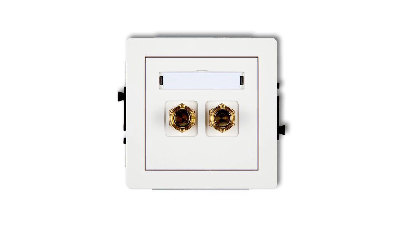 DECO Mechanizm gniazda głośnikowego pojedynczego (typu banan - czerwony i czarny, pozłacany, 4 mm2, do lutowania), biały mat 25D