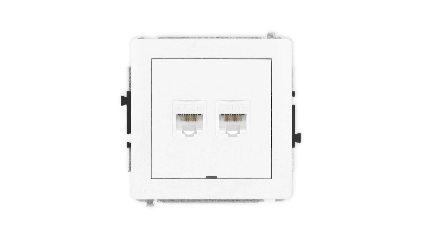DECO Mechanizm gniazda komputerowego podwójnego 2xRJ45, kat. 5e, 8-stykowy, bez pola opisowego, biały mat 25DGKBO-2