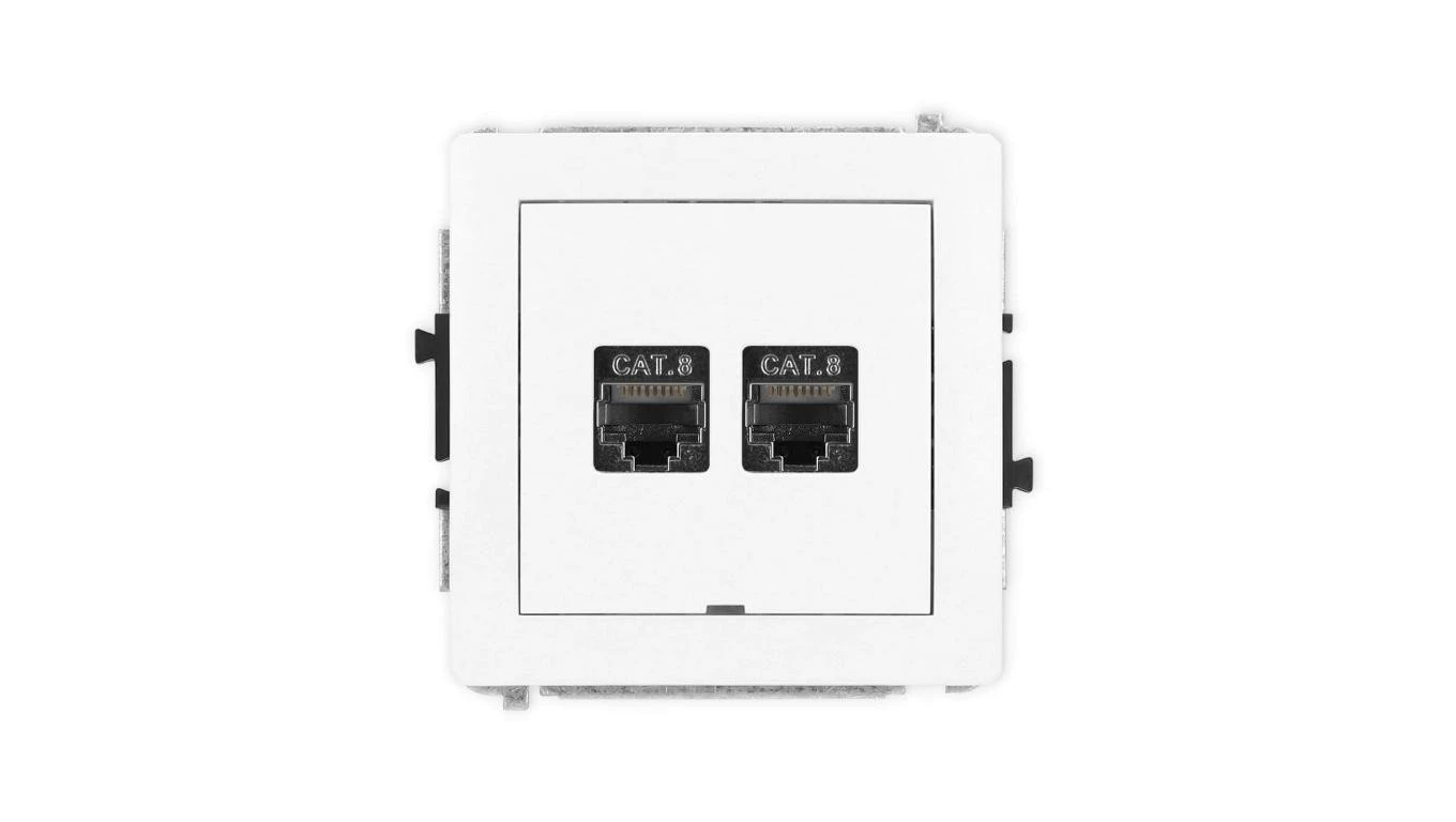 DECO Mechanizm gniazda komputerowego podwójnego 2xRJ45, kat. 8, ekranowane, 8-stykowy, bez pola opisowego, biały mat 25DGKBO-12