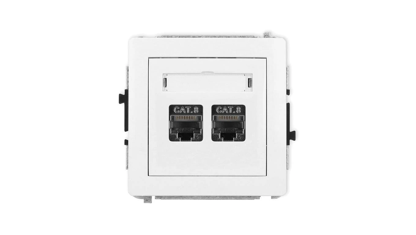 DECO Mechanizm gniazda komputerowego podwójnego 2xRJ45, kat. 8, ekranowane, 8-stykowy, biały mat 25DGK-12