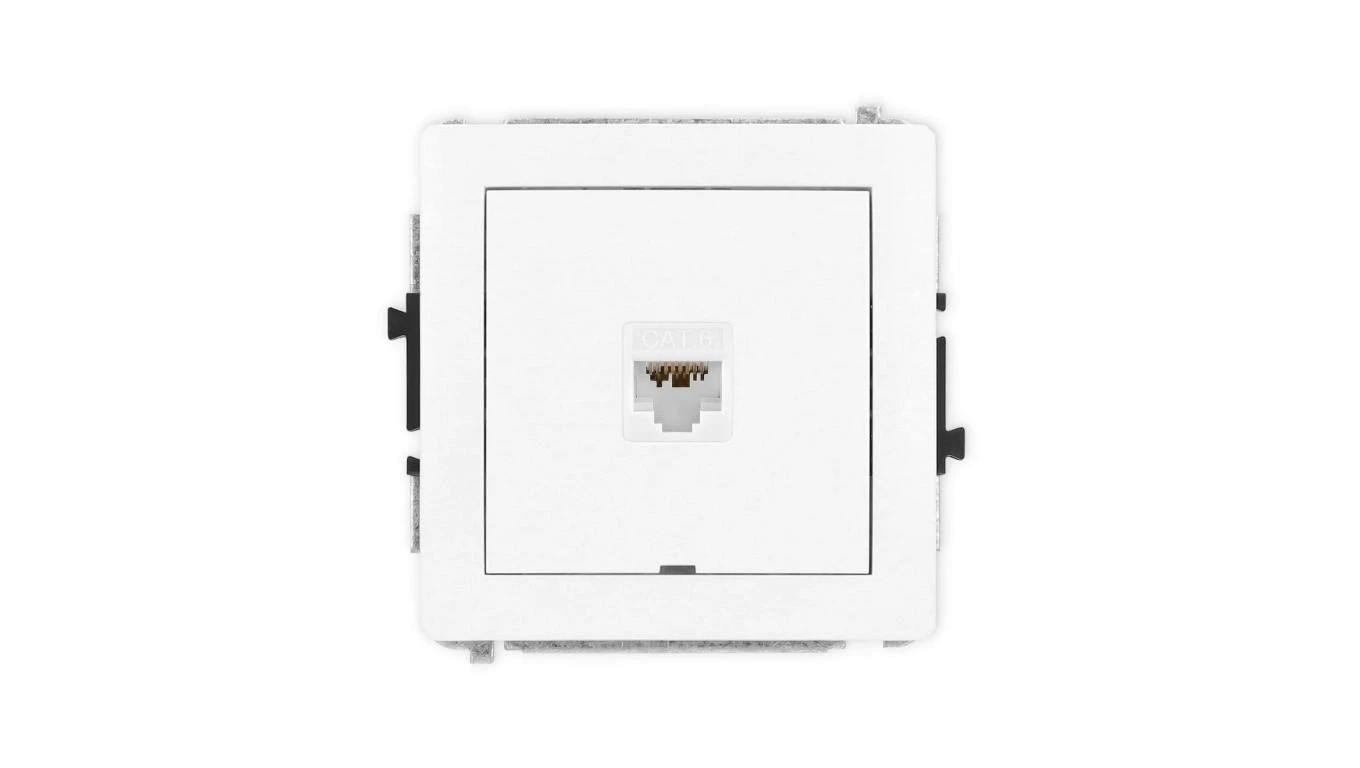 DECO Mechanizm gniazda komputerowego pojedynczego 1xRJ45, kat. 6A, 8-stykowy, bez pola opisowego, biały mat 25DGKBO-7