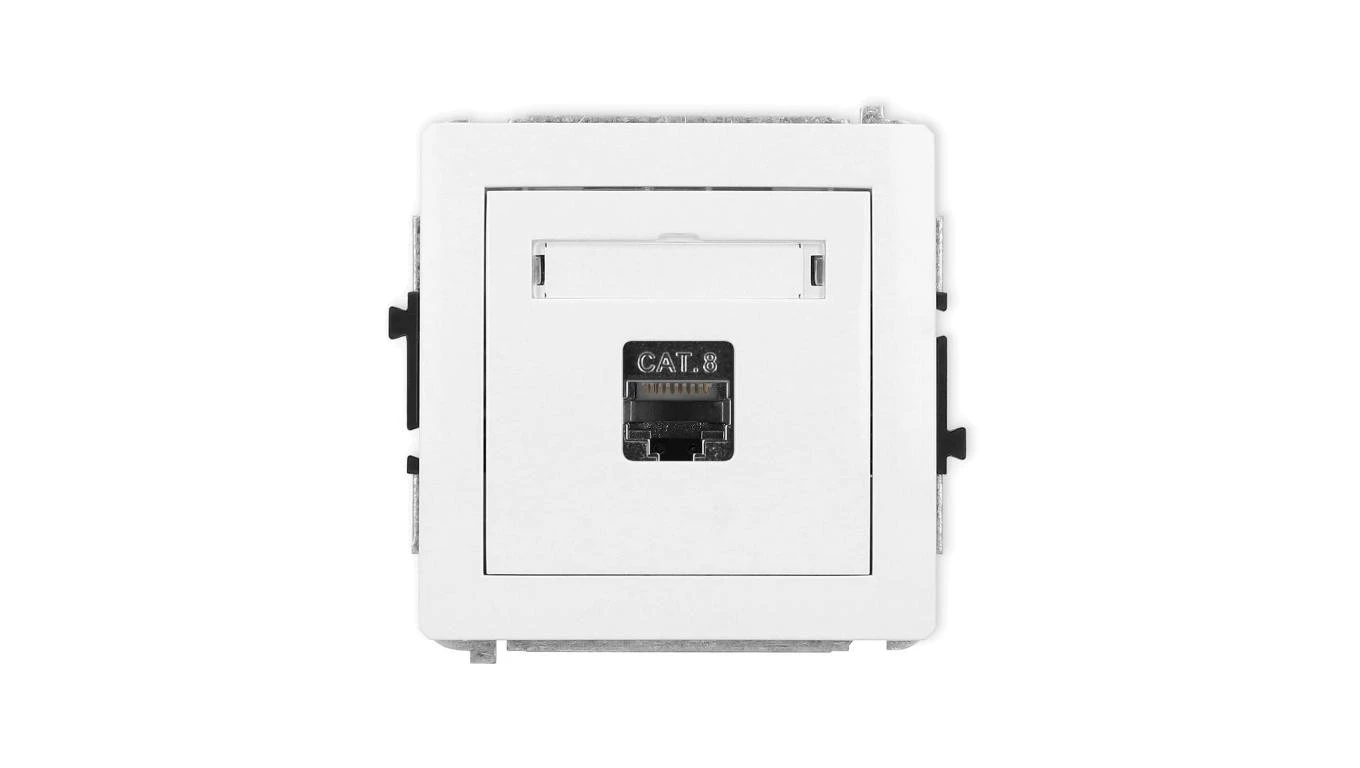 DECO Mechanizm gniazda komputerowego pojedynczego 1xRJ45, kat. 8, ekranowane, 8-stykowy, biały mat 25DGK-11