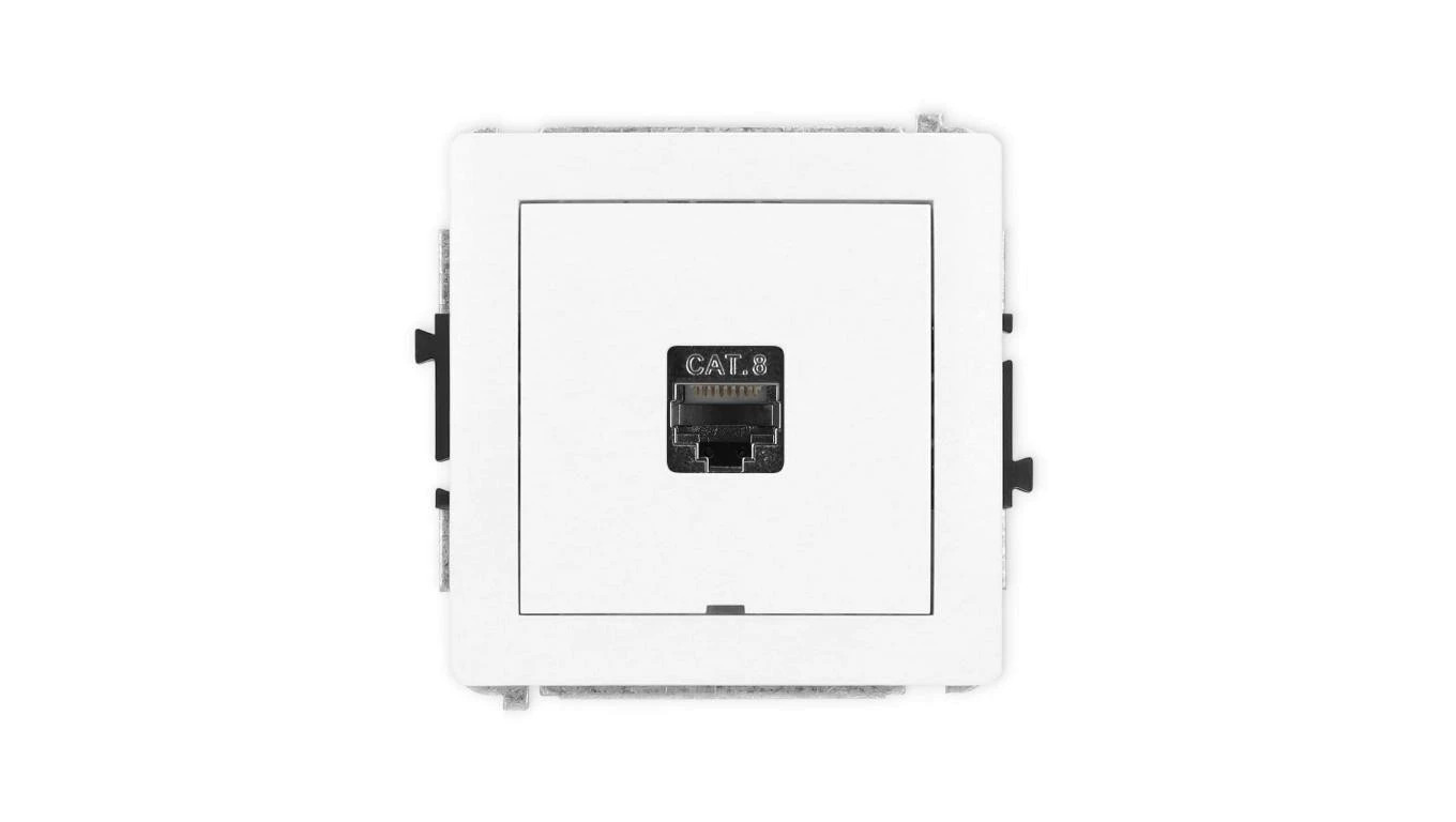 DECO Mechanizm gniazda komputerowego pojedynczego 1xRJ45, kat. 8, ekranowane, 8-stykowy, bez pola opisowego, biały mat 25DGKBO-1