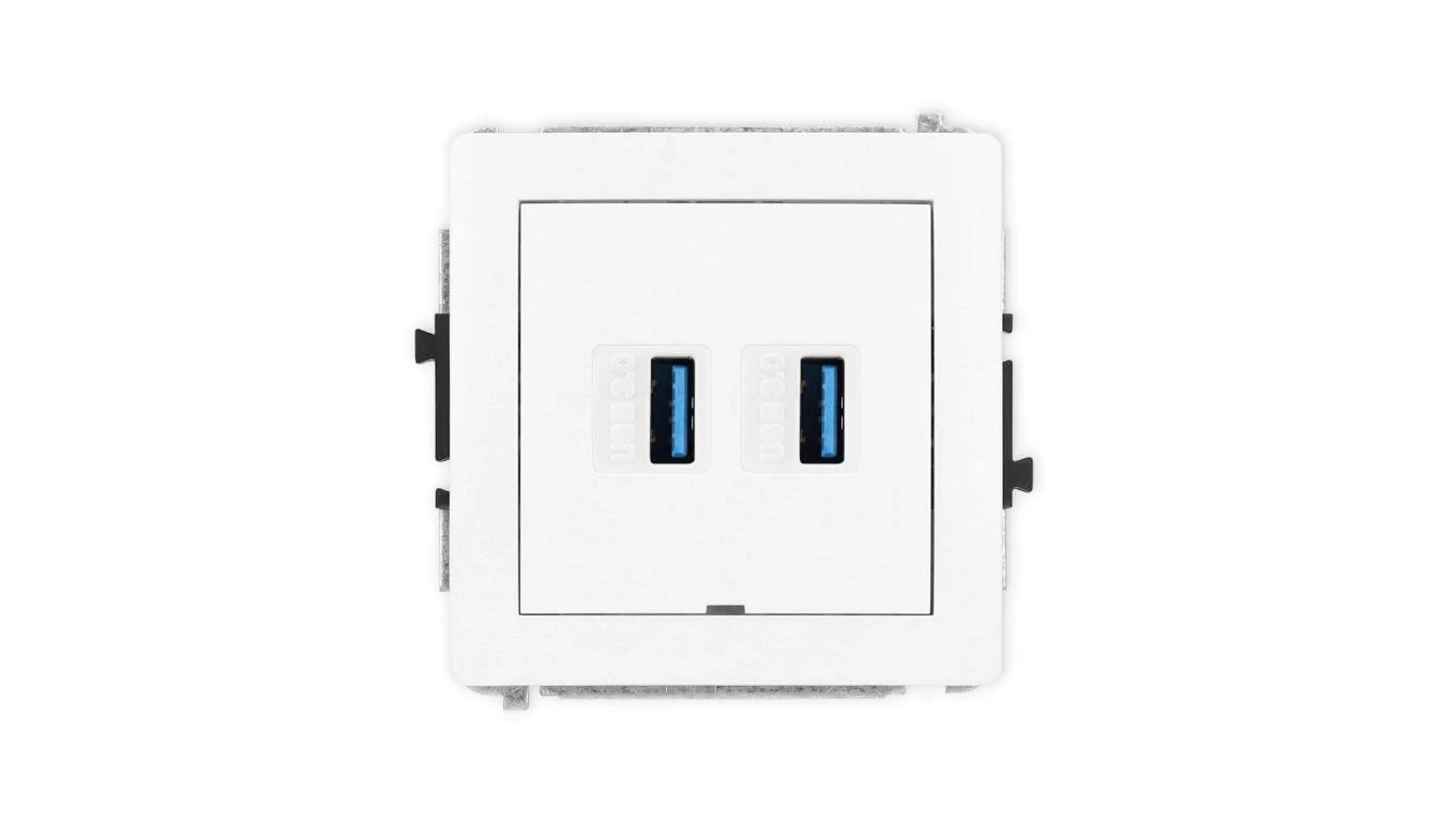 DECO Mechanizm gniazda podwójnego 2xUSB A-A 3.0, bez pola opisowego, biały mat 25DGUSBBO-6
