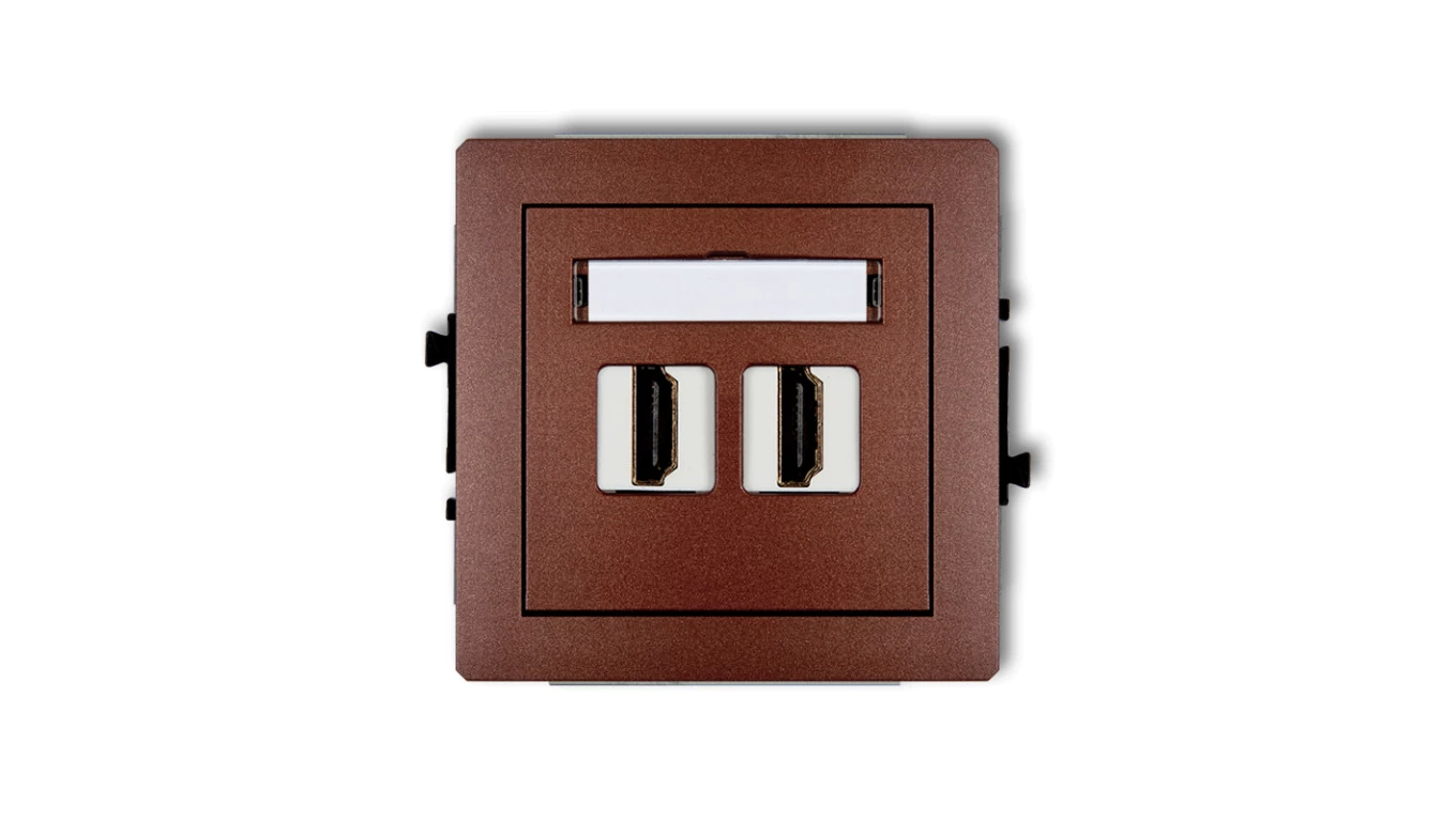 DECO Mechanizm gniazda podwójnego HDMI 2.0 brązowy metalik 9DHDMI-4