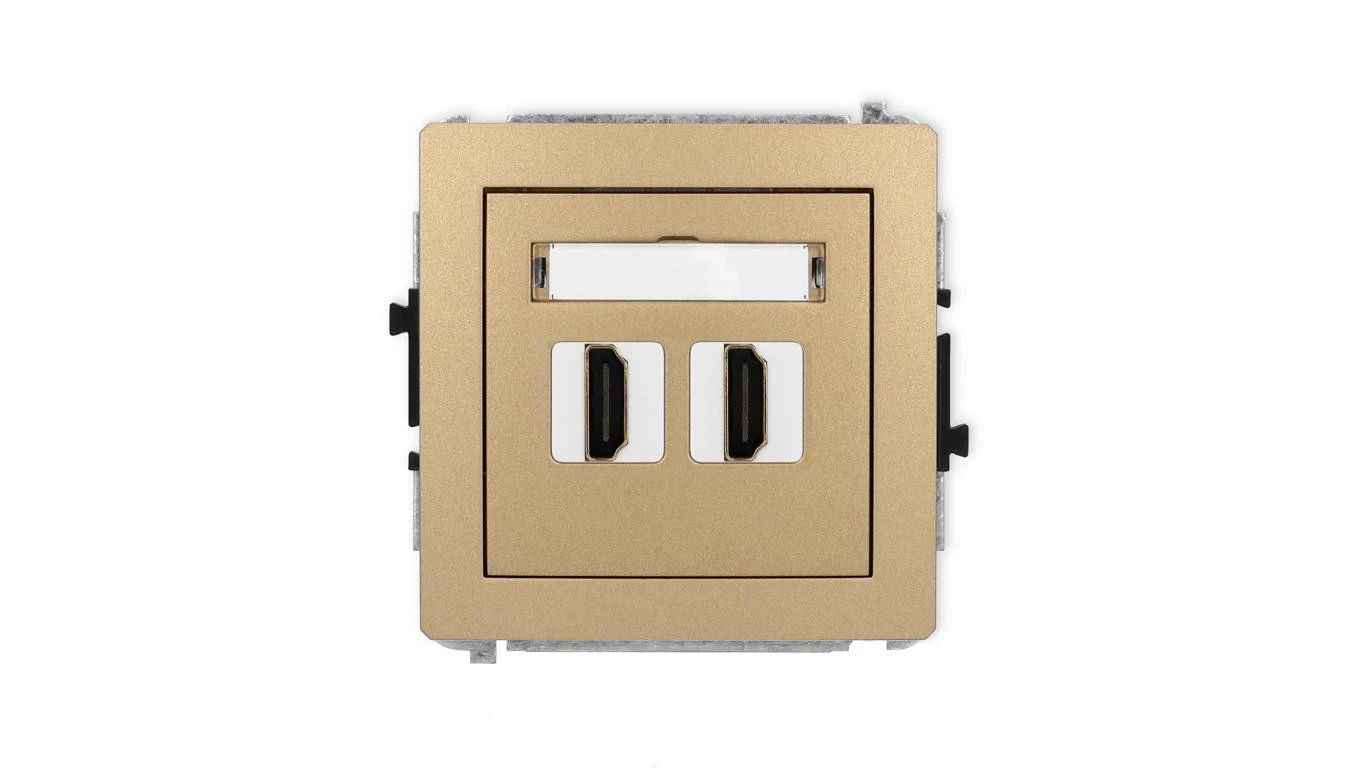 DECO Mechanizm gniazda podwójnego HDMI 2.1, 8K złoty metalik 8DHDMI-6