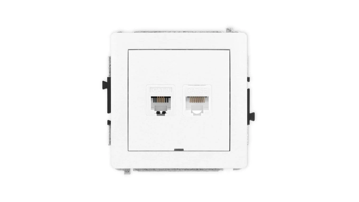 DECO Mechanizm gniazda telefon. pojedynczego 1xRJ11 + komputer. pojedynczego 1xRJ45, kat. 5e, 8-stykowy, bez pola opis. 25DGTKBO