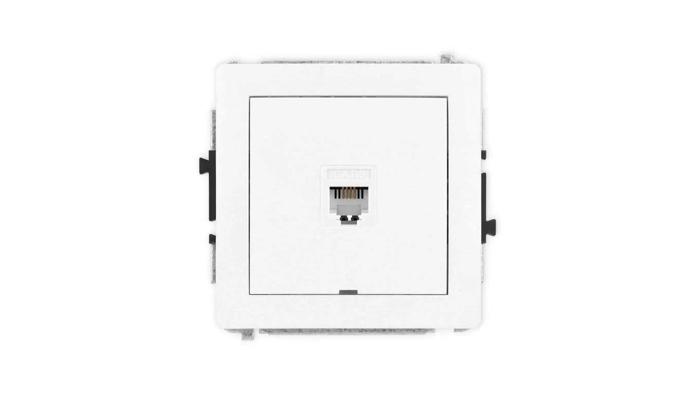 DECO Mechanizm gniazda telefonicznego pojedynczego 1xRJ11, 4-stykowy, beznarzędziowe, bez pola opisowego, biały mat 25DGTBO-1