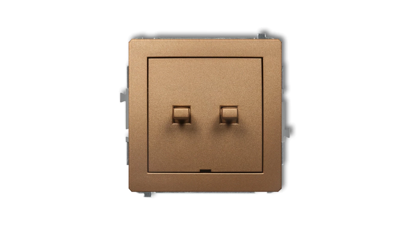 DECO Mechanizm łącznika jednobiegunowego ze schodowym w stylu amerykańskim (dwa klawisze bez piktogramów, osobne zasilanie) złot