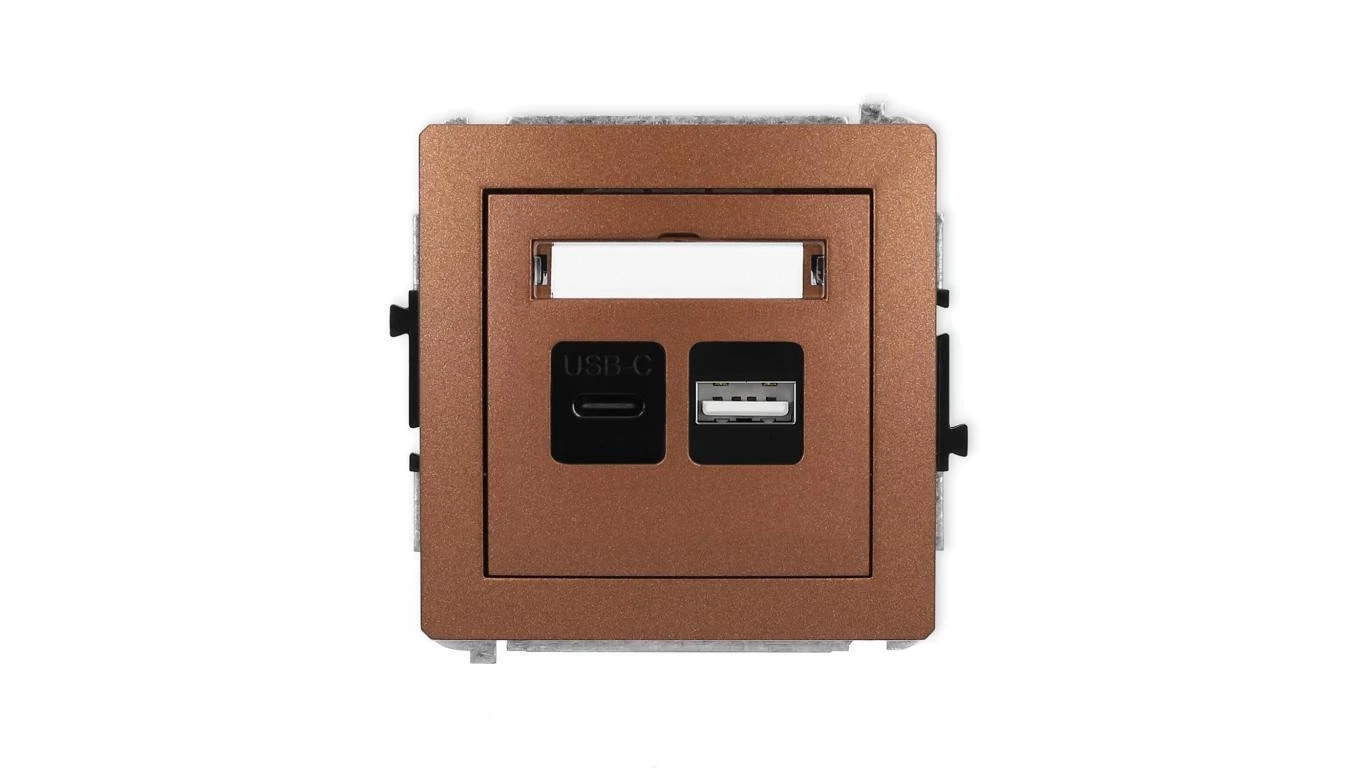 DECO Mechanizm ładowarki USB podwójnej USB C + USB A, 20W max., brązowy metalik 9DCUSB-8