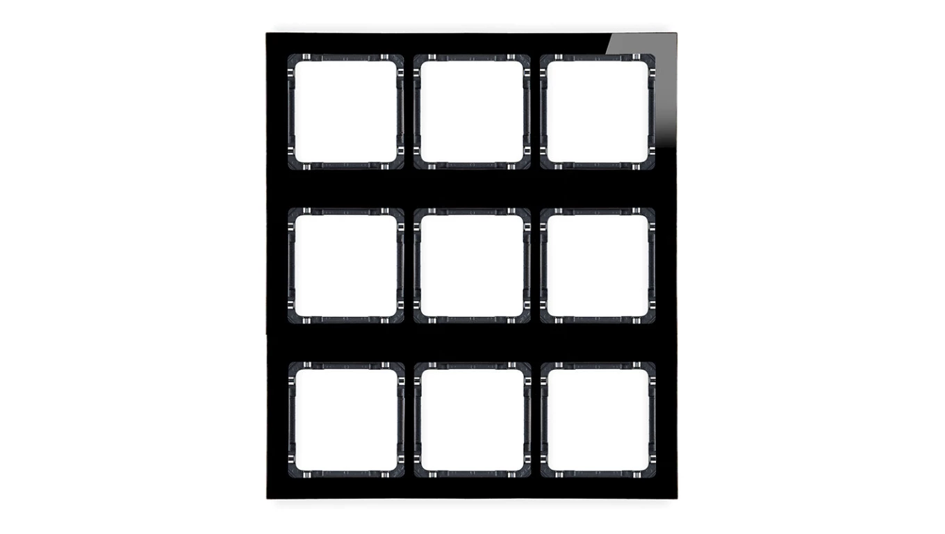 DECO Ramka modułowa 9 krotna (3 poziom, 3 pion) - efekt szkła (ramka czarna spód czarny) czarny 12-12-DRSM-3x3