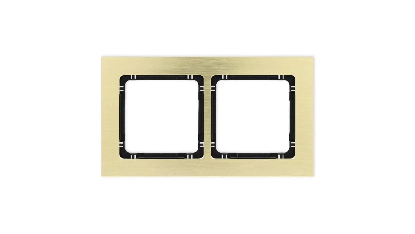 DECO Ramka uniwersalna podwójna - aluminium szczotkowane (ramka: kolor mosiężny spód: czarny) 8-12-DRA-2
