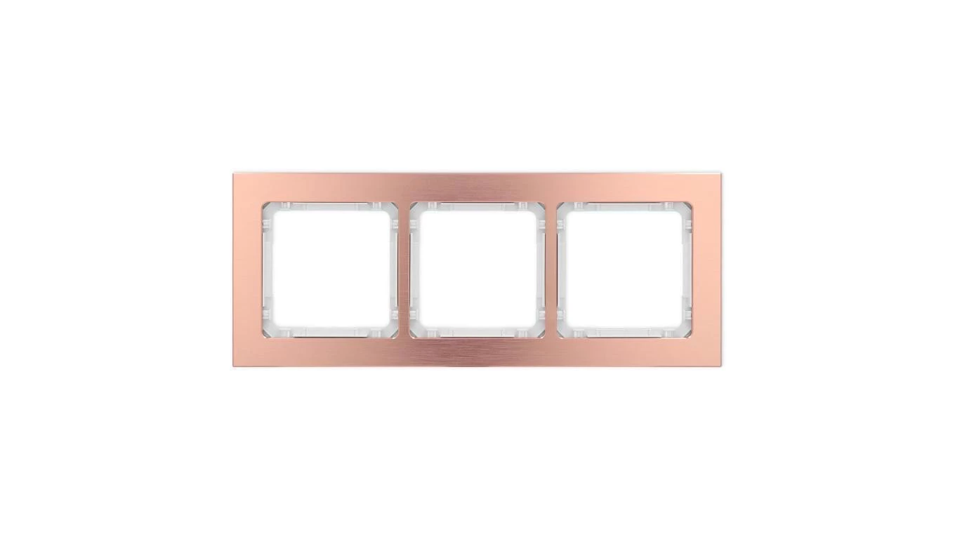 DECO Ramka uniwersalna potrójna - aluminium szczotkowane (ramka: kolor miedziany spód: biały) 9-0-DRA-3