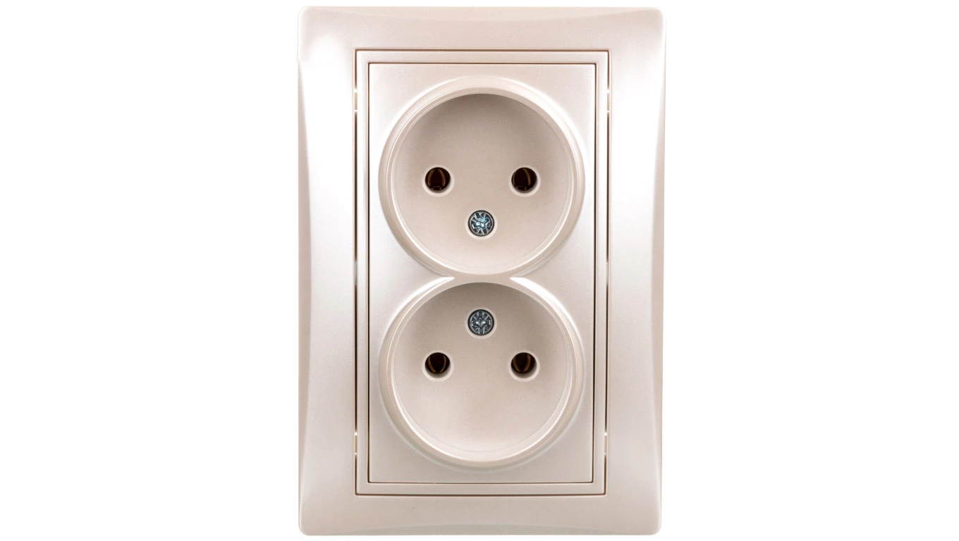 DOMO Gniazdo podwójne bez uziemienia kompletne śrubowe 16A 250V perłowy biały 011280130 24977