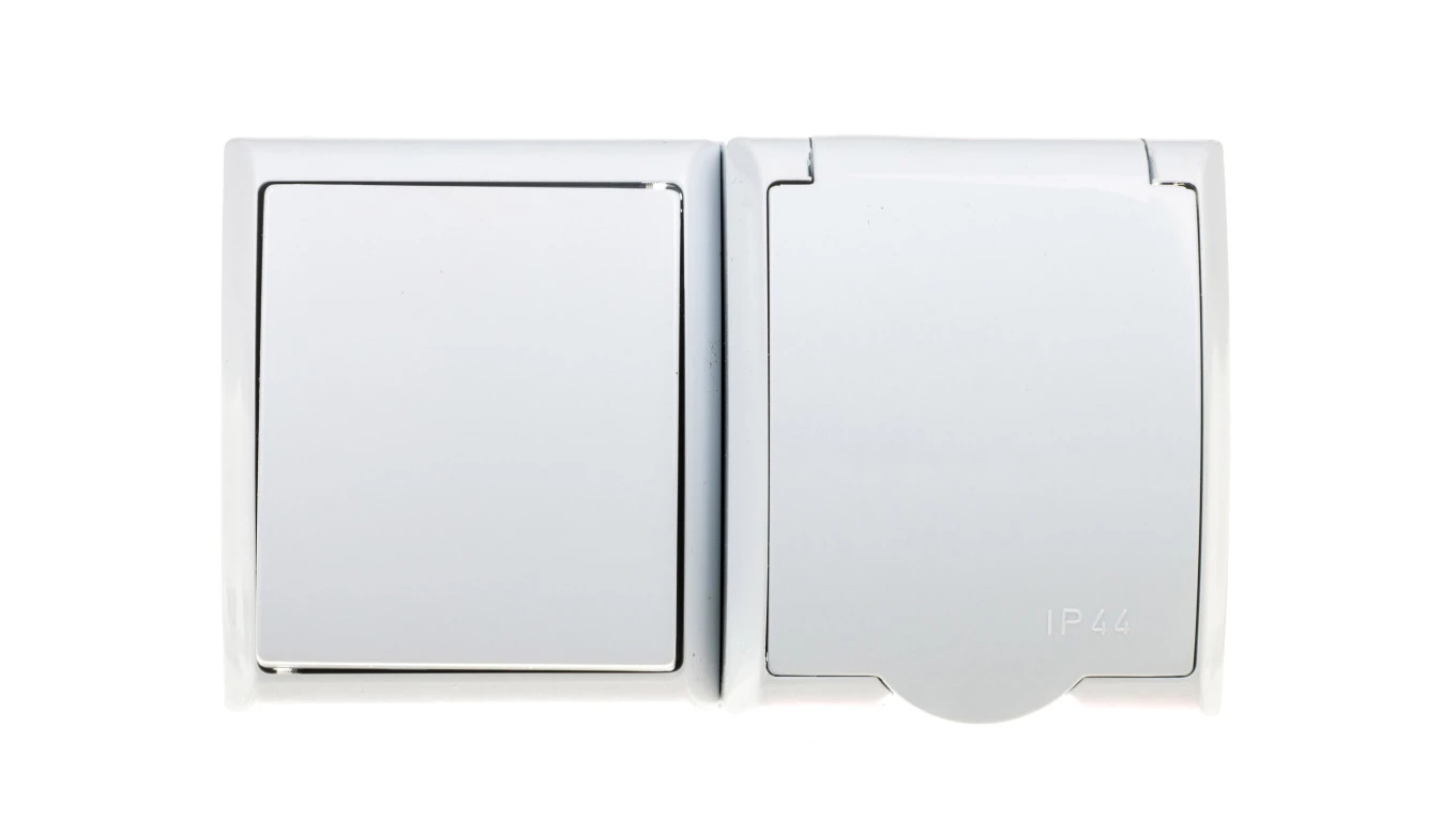 FALA Łącznik hermetyczny pojedynczy + gniazdo z/u Schuko z klapką białe ZH-Ł1GS/00/w