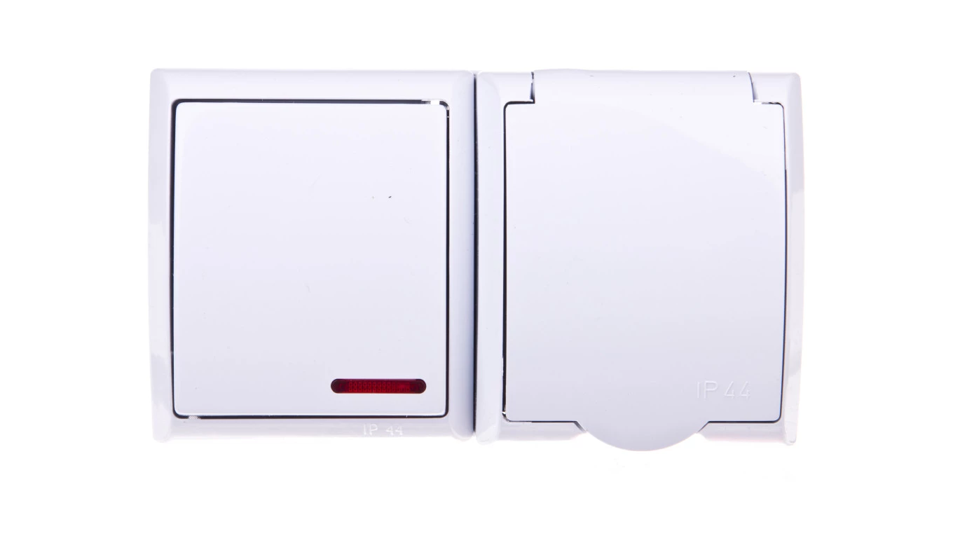 FALA Łącznik hermetyczny pojedynczy z podświetleniem LED + gniazdo hermetyczne pojedyncze z/u z klapką białe ZH-Ł1SG/00/w