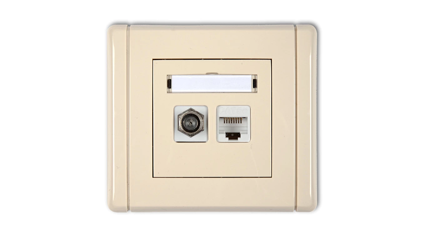 FLEXI Gniazdo antenowe pojedyncze typu F (SAT) + gniazdo komputerowe pojedyncze 1xRJ45 kat. 5e 8-stykowe beżowy 1FGFK-1