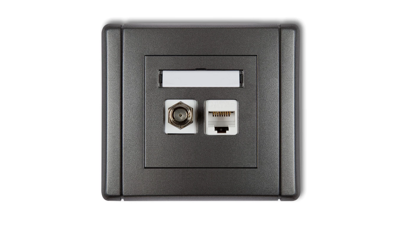 FLEXI Gniazdo antenowe pojedyncze typu F (SAT) + gniazdo komputerowe pojedyncze 1xRJ45 kat. 5e 8-stykowe grafitowy 11FGFK-1