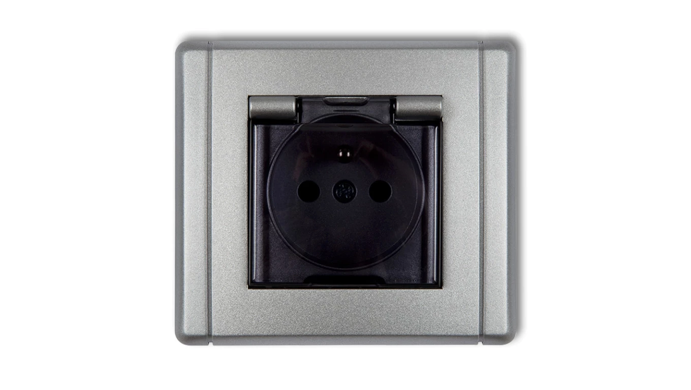 FLEXI Gniazdo bryzgoszczelne z/u (klapka dymna) srebrny metalik 7FGPB-1zdp