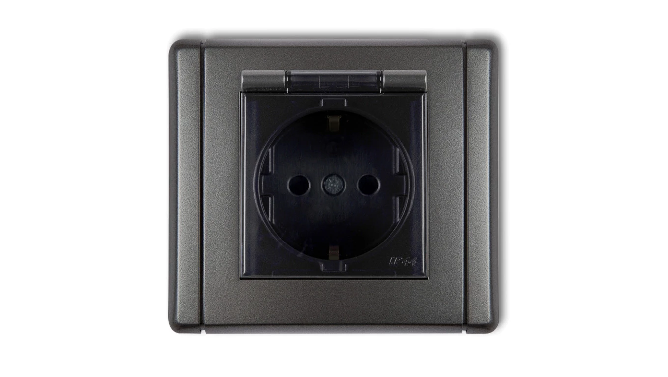 FLEXI Gniazdo bryzgoszczelne z/u SCHUKO (klapka dymna) grafitowy 11FGPB-1sdp